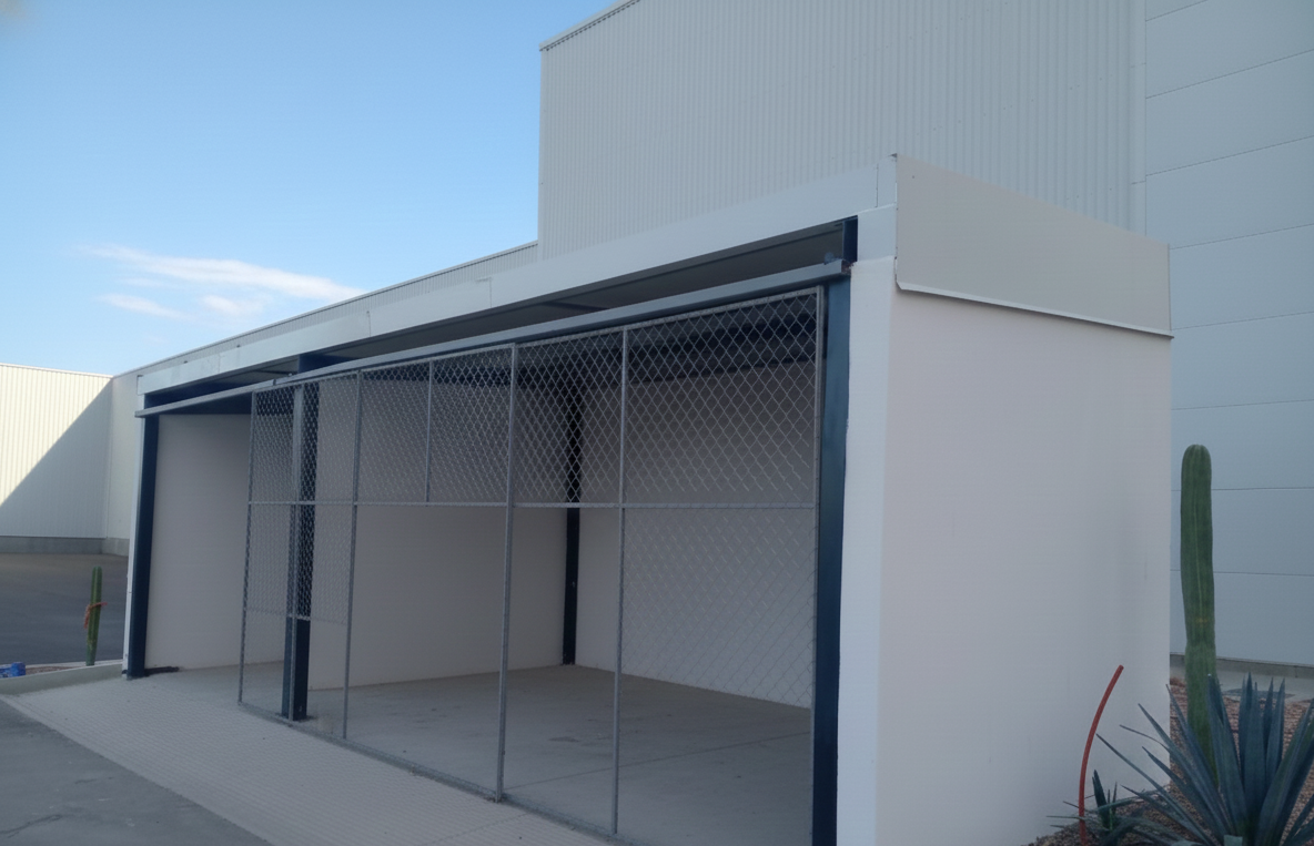 área de residuos, un área de fumadores, todos tienen una ligera cimentación de concreto,