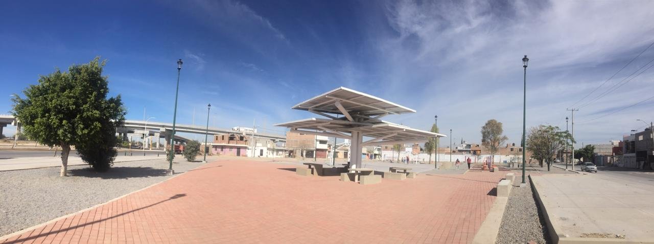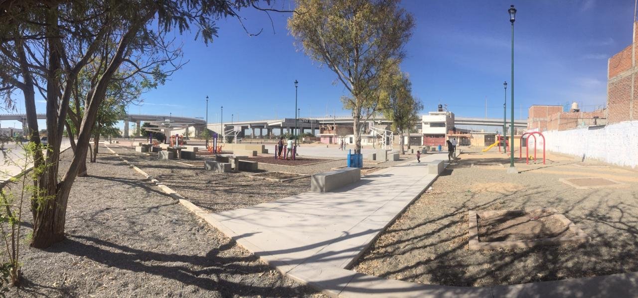 El proyecto también incluyó bancas de concreto y una palapa central que brinda sombra y áreas de descanso. Además, se incorporó la electrificación necesaria para iluminación nocturna, asegurando un espacio seguro, funcional y atractivo para la comunidad.